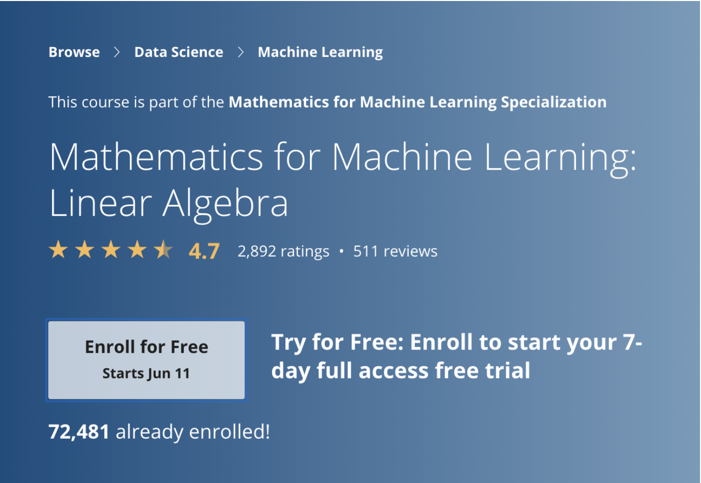 這兩種課程也都能免費旁聽,差別就在於你在寫作業的時候成績會不會被採計,然後最後能不能拿到證書。部分課程還會有某些討論區被限制留⾔,像是這邊我申請的線性代數課程,旁聽的⼈無法完成week2的考試,也沒辦法對答案。 另外有個朋友告訴我,若是要在國外找⼯作的話,最好要拿證書,提供給⼤家參考。