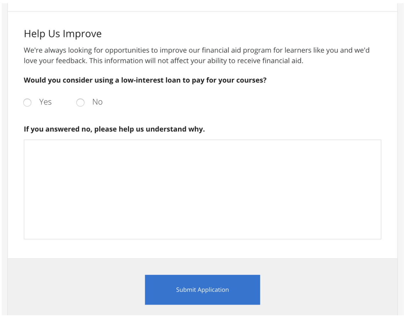 Would you consider using a low-interest loan to pay for your courses? If you answered no, please help us understand why?你會考慮用低利息貸款來為你想上的課付款嗎?如果你回答不會,請讓我們了解原由?